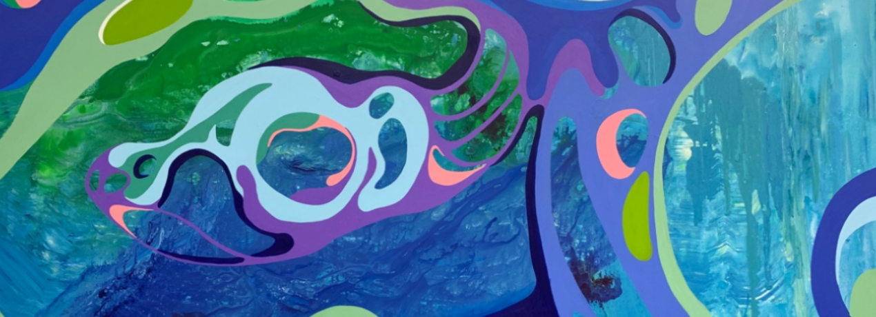 En su proceso, las morfologías que represento en el lienzo son rutas hacia la libertad y sus espacios y tiempos, llenos de color y misterios a ser descifrados. Los colores de la naturaleza, la topografía de los territorios naturales, la fractalidad de los ríos, caminos y vegetación frente al movimiento de la luz y el agua, le inspiran.