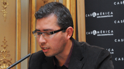08/03/2013. Julio Espinosa habla haciendo poesía. Tranquilo, pausado, escogiendo con cuidado cada una de las palabras. El poeta chileno, que actualmente reside en España, ha publicado varios libros, como los poemarios NN o Sintaxis asfalto. Con La casa amarilla llega su obra más personal, en la que además de indagar en el lenguaje, lleva a cabo una reflexión más existencial y autobiográfica. Con esa actitud reflexiva, pero al mismo tiempo vital y dinámica, nos habla de su obra, su profesión y sus ideas.  Como chileno que vive en España, le preguntamos por la diferencia entre la poesía que se escribe a uno y otro lado del charco. Mientras de España destaca una tradición de realismo racionalista, de América Latina se queda con la renovación y la explosión de muchos autores interesantes. Pero Julio Espinosa no sólo sabe de poesía. Detrás del poeta y ensayista hay una persona sencilla con los pies en el suelo que dice haber trabajado friendo patatas, de camarero o de cajero. Profesiones, todas ellas, de las que también ha aprendido. Además de estas múltiples facetas, Espinosa es también profesor en la Escuela de Escritores. Frente a aquellos que piensen que un taller no puede convertirte en poeta, él defiende que estos talleres no sólo pueden enseñarte a escribir, sino también, y quizás sea lo más importante, a leer.  A pesar de su juventud, es ganador de varios premios (Premio Isabel de Portugal 2010, Premio Villa de Cox 2012 o Premio Pablo Neruda al conjunto de su obra), escritor de poesía, narrativa y ensayo, profesor... Le preguntamos a Julio Espinosa qué le queda por hacer, cuáles son sus ambiciones. Su respuesta lo dice todo: los concursos son sólo el medio de llegar a más gente, no el fin, "el día que no tenga nada que decir, me callaré".