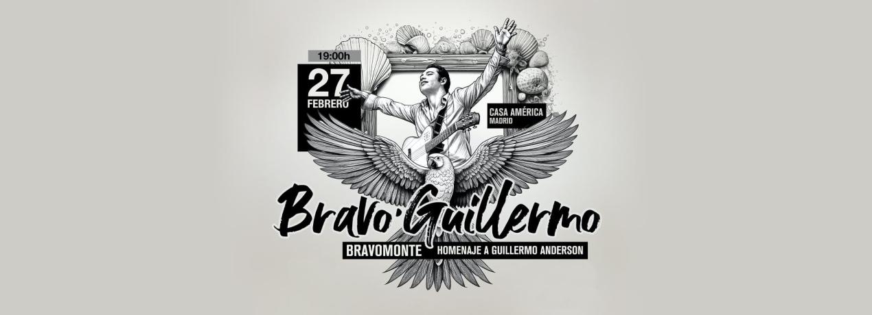 El grupo Bravomonte se honra en presentar un homenaje al cantautor hondureño Guillermo Anderson en Casa de América. Durante esta velada, interpretarán algunas de las canciones más emblemáticas de Guillermo Anderson, destacando su inigualable aporte musical, cultural y social a la Honduras contemporánea.