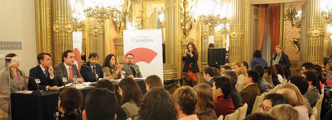 11/12/12. Vídeo y fotos del debate '2050: El papel de los hispanos en los Estados Unidos del siglo XXI', con los participantes en el XV Programa de Líderes Hispanos de Estados Unidos. También participaron el Director de la Fundación Carolina, Jesús Andreu; el Director General de Casa de América, Tomás Poveda, y el director de la FIIAPP, Javier Quintana.      dfty   dfty   dfty
