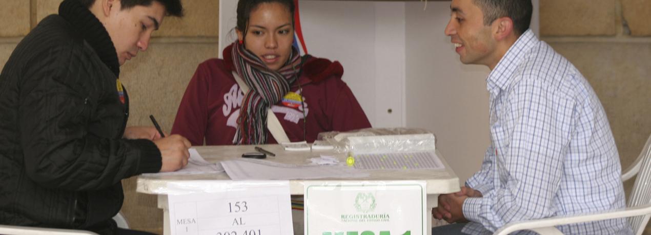 29/05/2014. Mesa redonda 'America Vota. Colombia' con motivo de las elecciones presidenciales que tuvieron lugar en Colombia el pasado 25 de mayo de 2014. Ciclo 'América vota' En 2014 están previstas elecciones presidenciales en varios países de América, como por ejemplo en Colombia y en Brasil. Con el objetivo de hacer un seguimiento a estos procesos elecctorales Casa de América organizará una serie de mesas redondas con expertos en análisis electoral, que ofrecerán las claves para entender los mismos. Presentó y moderó: - Cristina Manzano, directora de EsGlobal. Participaron: - Manuel Alcántara, politólogo. - Miguel Ángel Bastenier, periodista.