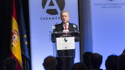 29/03/2016. El expresidente de Uruguay Luis Alberto Lacalle participó en el seminario 'Vargas Llosa: cultura, ideas y libertad', con una charla dentro del panel 'La situación de América Latina: una visión presidencial'. Luis Alberto Lacalle, presidente de Uruguay entre 1990 y 1995, comenzó su ponencia hablando sobre la lucha de poder en América Latina y en el resto del mundo. Así, la primera parte de su intervención se centró en tomar como ejemplo a su país y la influencia del filósofo marxista Antonio Gramsci. También habló sobre la evolución de las sociedades y de la economía en la región (los casos de Mercosur y la Alianza del Pacífico) y se refirió a la legitimidad política del voto. “El poder se ejerce en soledad pero no en aislamiento”, aseguró. Las jornadas reunieron a expresidentes de América Latina, así como intelectuales, pensadores y escritores a fin de reflexionar sobre el futuro de la Iberoamérica y los desafíos que afronta la democracia en la región. El primer día de este seminario contó con la participación, entre otros, del expresidente de Chile, Sebastián Piñera; los expresidentes de Colombia, Álvaro Uribe y Andrés Pastrana; y los expresidentes José María Aznar y Felipe González.