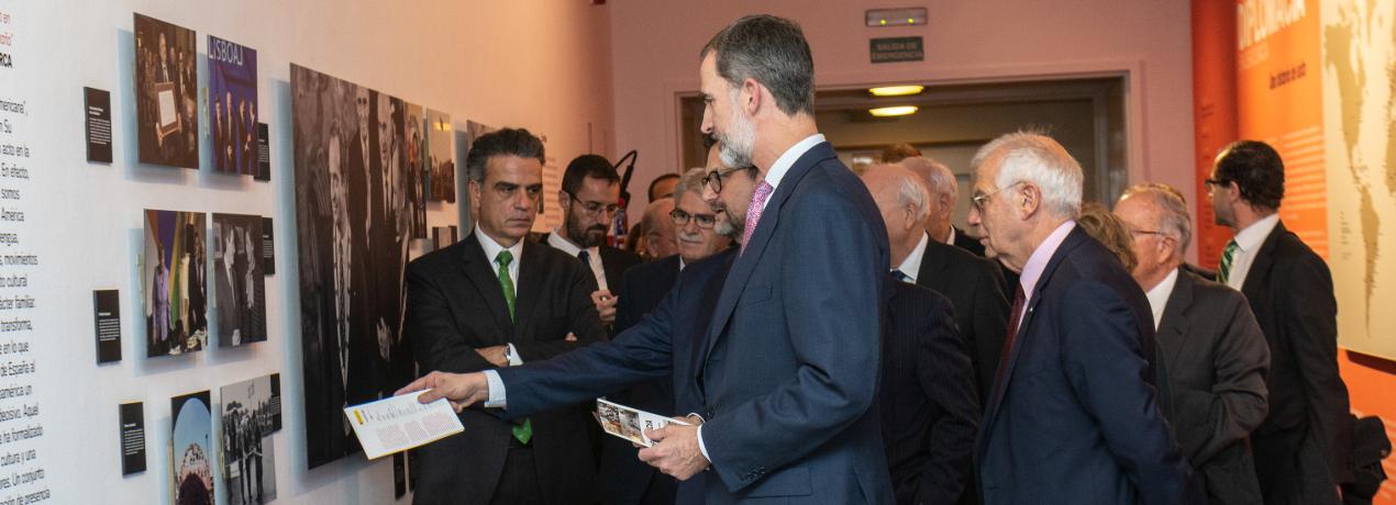 29/11/2018. S.M. el Rey Felipe VI inauguró la exposición '40 años de diplomacia en democracia', que se organiza en Casa de América con motivo del 40º aniversario de la Constitución. El acto de inauguración estuvo presidido por el Rey, quien recordó las últimas décadas de democracia en España desde la transición hasta nuestros días.