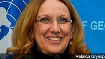 Rebeca Grynspan, economista y ex Vicepresidenta de Costa Rica, fue elegida por unanimidad Secretaria General Iberoamericana el 24 de febrero de 2014 en la ciudad de México, por los 22 países que conforman la Conferencia Iberoamericana, iniciando su mandato el 1 de abril de 2014. Antes de su nombramiento como Secretaria General Iberoamericana, la Sra. Grynspan fue Secretaria General Adjunta de las Naciones Unidas y Administradora Asociada del Programa de las Naciones Unidas para el Desarrollo (PNUD), nombrada por el Secretario General Ban Ki-moon el 1 de febrero de 2010. Desde 2006 al 2010 la Sra. Grynspan fue Subsecretaria General de la ONU y Directora Regional de la Dirección Regional para América Latina y el Caribe del PNUD. Con anterioridad, había sido Directora de la Sede Subregional en México de la Comisión Económica para América Latina y el Caribe (CEPAL) desde donde copresidió la Junta Ejecutiva del Instituto Internacional de Investigación de Políticas Alimentarias y participó en el grupo asesor del Programa PROLEAD (de apoyo al liderazgo de la mujer en América Latina) del BID. Antes de entrar a la SEGIB y a las Naciones Unidas, la Sra. Grynspan fue elegida Vicepresidenta de Costa Rica, 1994-1998. También fue Ministra de Vivienda, Ministra coordinadora de Asuntos Económicos y de Asuntos Sociales en ese mismo período y Viceministra de Finanzas de su país en el Gobierno de Oscar Arias. Como Vicepresidenta coordinó desde el Consejo Social la creación e implementación del Plan Nacional de Lucha contra la Pobreza en el marco del cual se creó el primer programa dirigido a las mujeres jefas de hogar, programa que se convirtió en Ley de la República por iniciativa de la entonces diputada Maria Lydia Sánchez. Durante su mandato en el PNUD (2010-2014) fue Presidenta del GSIC (Gender Steering and Implementation Committee), mecanismo corporativo de alto nivel que se encarga de diseñar y asegurar el cumplimiento de la estrategia de paridad e igualdad de género dentro de todo el PNUD, desde donde se ha impulsado la transversalización de equidad de género en la programación de la organización. También fue portavoz de género ante la Junta Ejecutiva del PNUD. Trabajó como Representante Delegada de la ONU en la Comisión Temporal para la Reconstrucción de Haití (2010-2013), una junta compuesta por funcionarios del gobierno de Haití, el ex-presidente de Estados Unidos Bill Clinton y otros socios internacionales de alto nivel. Rebeca Grynspan es desde el 1 de mayo de 2014, la Presidenta del Instituto Internacional para el Medio Ambiente y el Desarrollo (IIED). Además de su experiencia como asesora, conferencista y autora, la Sra. Grynspan ha formado parte de iniciativas fundamentales de las Naciones Unidas como el Grupo de trabajo del Proyecto del Milenio sobre Pobreza y Desarrollo Económico, y el Panel de Alto Nivel sobre el Financiamiento del Desarrollo. También es miembro del Grupo Asesor Internacional de la Iniciativa Think Tank del Centro Internacional de Investigaciones para el Desarrollo (IDRC por sus siglas en inglés). Ha trabajado con diversas instituciones gubernamentales, con organizaciones nacionales e internacionales como consejera, asesora e investigadora. La Sra. Grynspan es autora o coautora de numerosos artículos y libros sobre política social y económica, y sobre género y pobreza. Nacida en San José de Costa Rica, la Sra. Grynspan tiene un Máster en Economía de la Universidad de Sussex (Inglaterra). En noviembre de 2014 fue incluida entre los 50 iberoamericanos más influyentes del año en un estudio realizado por esglobal y FLACSO.