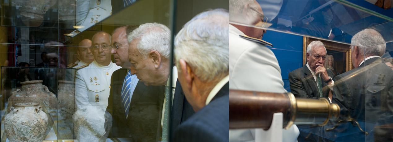 2/10/2013. La exposición del Museo Naval y Casa de América, 'La exploración del Pacífico: 500 años de historia', ha sido inaugurada con una visita del Ministro de Asuntos Exteriores y de Cooperación, don José Manuel García-Margallo, a la muestra, y con un acto académico. En el mismo, además del ministro, participaron don José Antonio Monago, presidente del Gobierno de Extremadura, y el Almirante Jefe de Estado Mayor de la Armada, Jaime Muñoz-Delgado y Díaz del Río, quien ofreció la conferencia 'El Océano Pacífico hoy. Hacia un nuevo centro de gravedad mundial'. La bienvenida estuvo a cargo de don Tomás Poveda Ortega, Director General de la Casa de América, y José Antonio González Carrión, Almirante Director del Museo Naval.