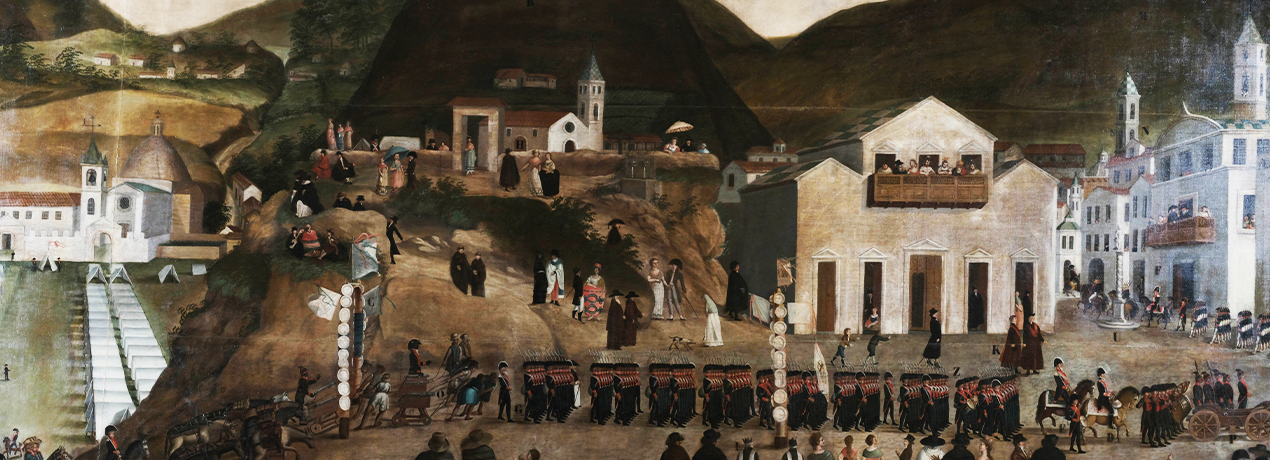 Al estar dentro de un museo las imágenes entran en el conocimiento visual de miles de personas, y se convierten en documentos que nos permiten  reflexionar sobre la impronta española en América. A través del estudio de las imágenes también vamos a ver la historia, los documentos aportan muchos datos, pero las imágenes visuales pueden resultar igual de ricas en información, y suponen otra huella, otra impronta para nuestro conocimiento histórico. Son tres imágenes de ciudades de claro cuño hispano y las tres son diferentes: Lima, Potosí y Quito.